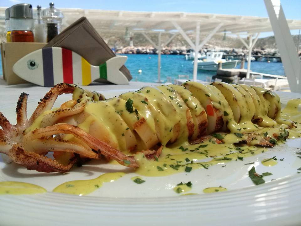 Η μαγείρισσα μας έχει μεγάλη εμπειρία στην ελληνική κουζίνα, μαγειρεύει με κυκλαδίτικα προϊόντα και ψάρια από τους ντόπιους ψαράδες.