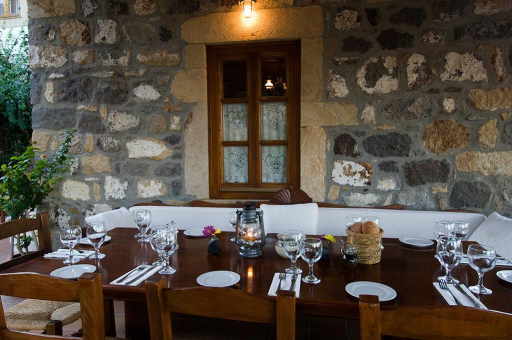 Σπιτικό ψωμί και γλυκά παρασκευάζονται σε καθημερινή βάση στο μαγαζί. Προσφέρουμε μια μεγάλη λίστα από τα καλύτερα κρασιά τα οποία είναι διαθέσιμα στην Ελλάδα. Το προσωπικό είναι διακριτικό και φιλικό με τους πελάτες. Το εστιατόριο είναι ανοιχτό από τον Ιούνη ως τον Σεπτέμβρη . Ανοίγουμε μόνο για δείπνο και κλείνουμε τις Δευτέρες . Όλες οι πιστωτικές κάρτες είναι δεκτές . Οι κρατήσεις για τραπέζι συνιστώνται .