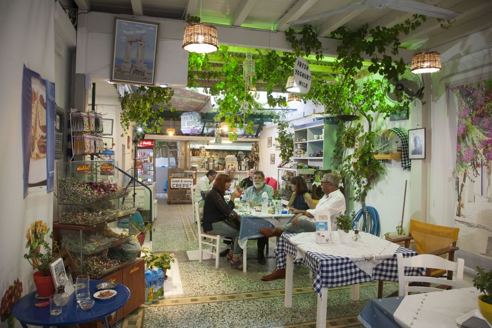 Στόχος μας είναι η διατήρηση της Ναξιακής και Κυκλαδίτικης κουζίνας χρησιμοποιώντας αγνά, παραδοσιακά υλικά του τόπου μας από καλλιέργειες βιολογικής παραγωγής, από φάρμες και ενώσεις αναγνωρισμένης αξίας, αλλά και πολλά από αυτά, από τα περιβόλια μας στην κοινότητα Ποταμιάς Νάξου. Ξεκινώντας με τα υπέροχα πρωινά μας, όλα με Ναξιακές γεύσεις. Ο συνδυασμός του φρέσκου τυριού, αυγά ημέρας, μαρμελάδες σπιτικές, μέλι θυμαρίσιο, βούτυρο Νάξου, βότανα για τα αφεψήματά σας, σπιτικά κέικ, γιαούρτι Νάξου με φρούτα εποχής, μας κάνουν να ξεχωρίζουμε. Τα φαλάφελ μας με ντόπια κυκλαδίτικα προϊόντα, όπως φάβα Σαντορίνης, ρεβίθια ορεινής Νάξου, και τοπικά φρέσκα λαχανικά από τον κήπο μας, τα κάνουν απολαυστικά. Σας προτείνουμε να ζητάτε τα πιάτα της ημέρας τα οποία είναι, θαλασσινές νοστιμιές όπως ψάρια, χταπόδι, καλαμάρια, γαύρο μαρινάτο, γόπες, κολιούς και άλλα.