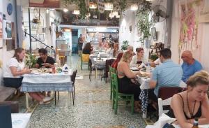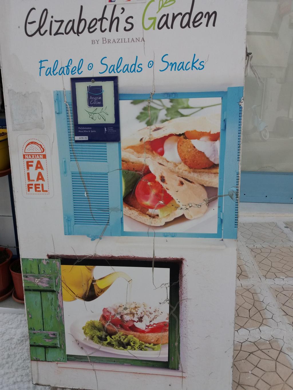 Τα κρεατικα όπως κατσικάκι Νάξου αρνάκι Νάξου τυριά Νάξου φαγητα ,της κατσαρόλας, αλλά και τα υπέροχα φαλαφελ μας για αυτούς που κάνουν υγιεινή διατροφή του φούρνου ψητά με την ειδική φροντίδα της μαμάς Ελισάβετ χρησιμοποιοντας την εμπειρία του επαγγελματία για 50 χρόνια μάγειρα πατέρα της και τις ανατολικές συνταγές της γιαγιάς της η οποία καταγόταν από την Κωνσταντινούπολη θα σας κάνει να έρθετε και να ξανάρθετε από την νοστιμιά και την αγάπη που βάζει στα πιάτα της.Λογω του covit19 φροντίσαμε και φτιάξαμε ένα υπέροχο περιβάλλον στην ταράτσα του κτιρίου με θέα το φεγγάρι και το λιμάνι της Νάξου. Στο τέλος κάθε γεύματος σας περιμένει μια έκπληξη κεράσματος από τοπικά γλυκά κουταλιού που μαζεύουμε στο περιβόλι μας την υπέροχη ρακί μας η το κίτρο Νάξου ευχαριστώντας που μας προτιμησατε σας περιμένουμε και σας ευχαριστούμε.