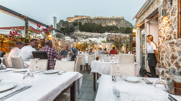 Το Βυζαντινό βρίσκεται στον όμορφο κεντρικό δρόμο στην καρδιά της Λίνδου, είναι ίσως το πιο ξεχωριστό μέρος όπου μπορείτε να επιλέξετε για το δείπνο σας στη Λίνδο.