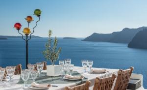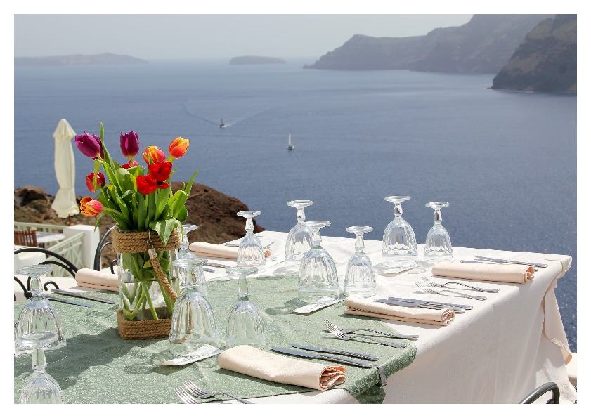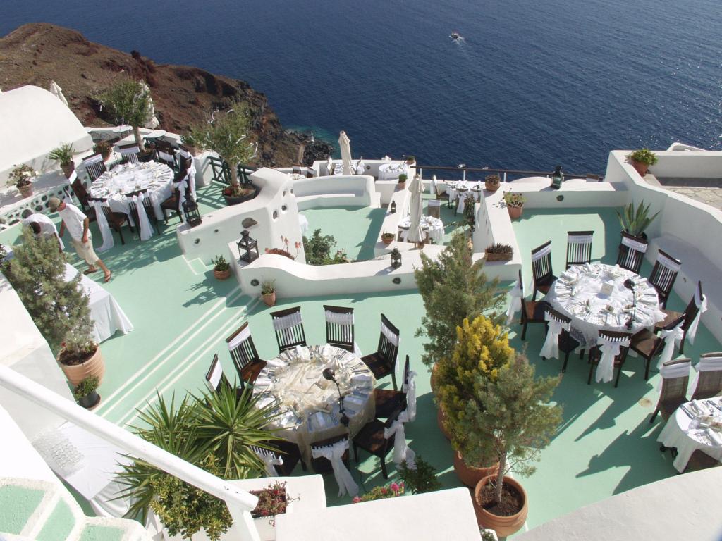 Το εστιατόριο μας διαθέτει εσωτερικό και εξωτερικό χώρο σε γραφικές παραδοσιακές βεράντες με θέα το πανέμορφο Αιγαίο Πέλαγος, την μοναδική Καλντέρα και το ειδυλλιακό ηλιοβασίλεμα της περιοχής. Οι ευρύχωρες βεράντες μας σε διάφορα επίπεδα, βρίσκονται ακριβώς κάτω από το διάσημο ανεμόμυλο της Οίας και από τον ιστορικό ναό της Αγίας Αικατερίνας, που χρονολογείται από το 1640.