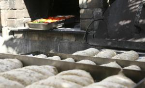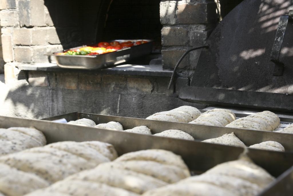 Η κυρα Λίντα ζυμώνει φρέσκο ψωμί και το ψήνει στον παραδοσιακό ξυλόφουρνο.