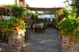 Παραδοσιακή και προσεγμένη εικόνα με κήπο και ωραία ελληνική μουσική στο παρασκήνιο.