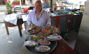 ντόπια κρέατα τα οποία είναι παραγωγή δική μας, φρέσκα ψάρια που είναι πάντα ημέρας,