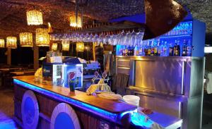 Ελληνικές παραδοσιακές γεύσεις, ολόφρεσκα θαλασσινά, ζωντανοί αστακοί και οστρακοειδή, ντόπια κρεατικά, δροσερές σαλάτες με λαχανικά που καλλιεργούμε οι ίδιοι με φυσικές μεθόδους και βέβαια εκλεκτό κρασί και ελαιόλαδο δικής μας παραγωγής. Δροσιστικά κοκτέιλ και φρέσκους χυμούς, μόλις 10 μέτρα από τη θάλασσα, σε ένα παραδεισένιο τοπίο όπου θα δείτε ένα από τα πιο όμορφα ηλιοβασιλέματα της Μεσογείου! Εδώ βρίσκεται η πιο γνωστή ταβέρνα του νησιού! Χωρίς κανένα συμβιβασμό στην ποιότητα, είναι ο αγαπημένος γευστικός προορισμός για επισκέπτες και ντόπιους καλοφαγάδες, περισσότερο από 50 χρόνια! Η θάλασσα απλώνεται κυριολεκτικά στα πόδια σας, καθαρή, ρηχή με αμμώδη παραλία ιδανική για παιδιά! Με πολλές δωρεάν παροχές, όπως: wi-fi μέχρι την παραλία, ψάθινες ομπρέλες με ξαπλώστρες, ντους, παιδική χαρά, parking κ.α.