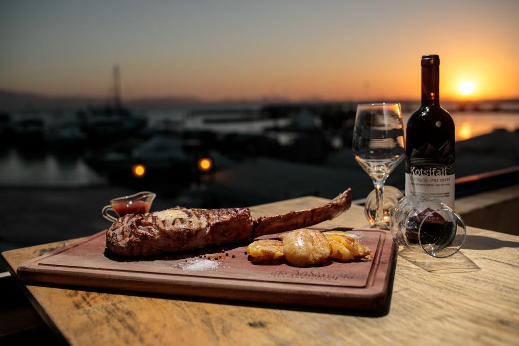 Η φιλοσοφία του βασίζεται στη σωστή απόδοση του κρέατος όπως το προτιμάει ο πελάτης...., ώστε όλη η γεύση και η αυθεντικοτητα των τοπικών θησαυρών να απολαμβάνονται στο ακέραιο την ίδια ώρα που θρεπτικές ουσίες παραμένουν πλούσιες. Εκτός από την άριστη γνώση και προσφορά των ποιοτικών steaks, θα βρείτε τοπικά προϊόντα όπως Ναξιωτικο τυρί σε συγκλονιστικες προτάσεις ορεκτικών και την γευστικότερη μαρμελάδα τομάτας που συνοδεύει την τριλογία Ναξιωτικων παναρισμενων τυριών που έχετε δοκιμάσει ποτέ! Εννοείτε πως θα απολαύσετε τις διάσημες τηγανιτές πατάτες της Νάξου όπως δεν τις έχετε απολαύσει πουθενά, "κυδωνατες '' στο Λαδόχαρτο που δεν θα βρείτε αλλού στο νησί!! Το ψωμάκι είναι επίσης χειροποίητο.