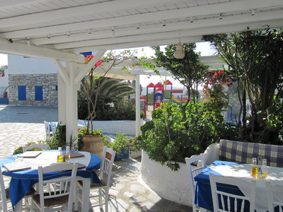 Το μαγαζί μας βρίσκεται στην πλατεία του μοναστηρίου της Άνω Μεράς του μοναδικού χωριού της Μυκόνου. Σε ένα περιβάλλον κατάλληλο για φαγητό αφού συνδυάζει ησυχία, πάρα πολλά λουλούδια και πρασινάδα.