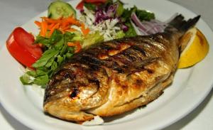 Διαθέτουμε φρέσκα ντόπια κρέατα ψητά και μαγειρευτά, φρέσκα ψάρια, θαλασσινά της Μεσογείου.