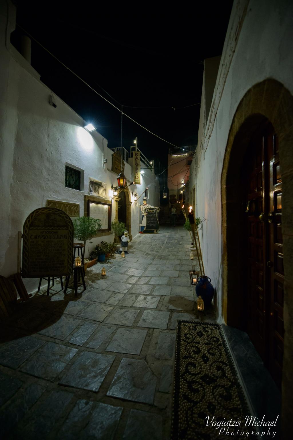 Τα ψηλά τείχη πρόσθεσαν προστασία της ιδιωτικής ζωής και βοήθησαν επίσης να κρατούν τις κατοικίες δροσερές το καλοκαίρι. Οι Έλληνες είναι γνωστοί για ισχυρούς οικογενειακούς δεσμούς τους και εμείς δεν αποτελούμε εξαίρεση. Είμαστε περήφανοι που έχουμε διατηρήσει πολλές από τις οικογενειακές κτήσεις στο εστιατόριο. Τα εργαλεία στον τοίχο ανήκανε στον παππούδες των ιδιοκτητών, οι οποίοι τα χρησιμοποιούσαν για επισκευές στα πλοία. Όλοι οι χώροι του σπιτιού εμφανίζουν τα όμορφα παραδοσιακά χειροποίητα ζωγραφισμένα πιάτα από τη Λίνδο.