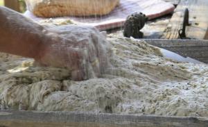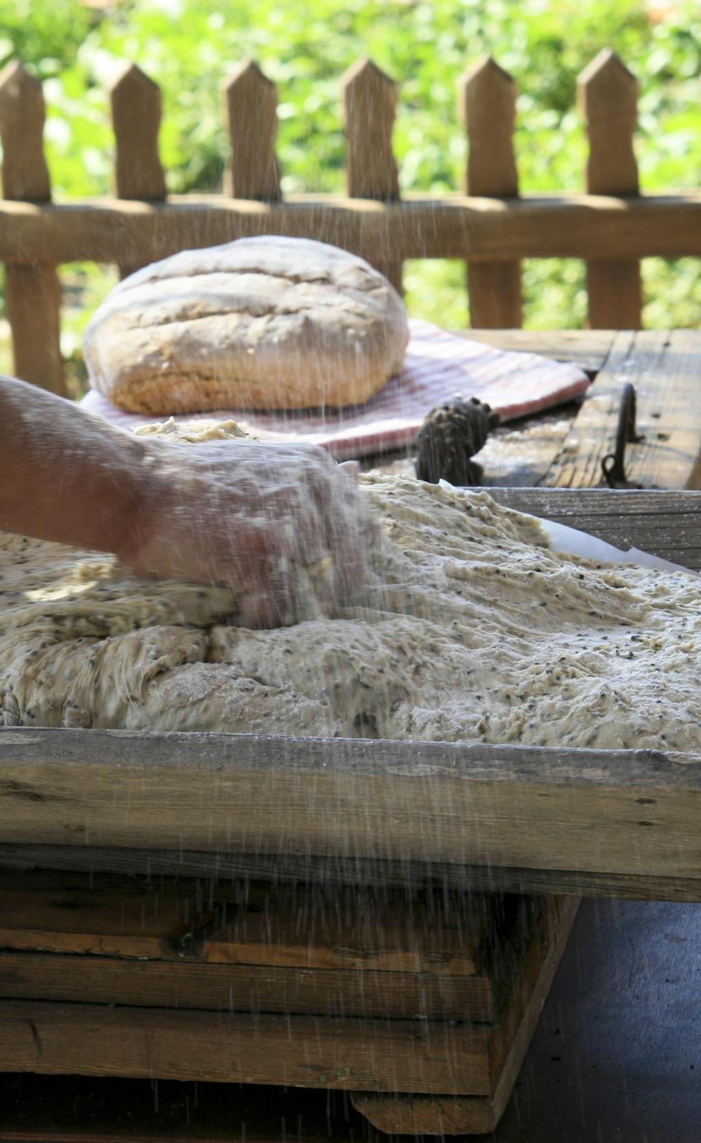 Η κυρα Λίντα ζυμώνει φρέσκο ψωμί και το ψήνει στον παραδοσιακό ξυλόφουρνο.