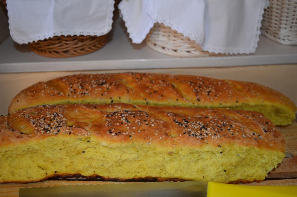 Καθημερινά ζυμώνουμε και ψήνουμε το ψωμί μας με βιολογικά αλεύρια και παρασκευάζουμε τα γλυκά μας.