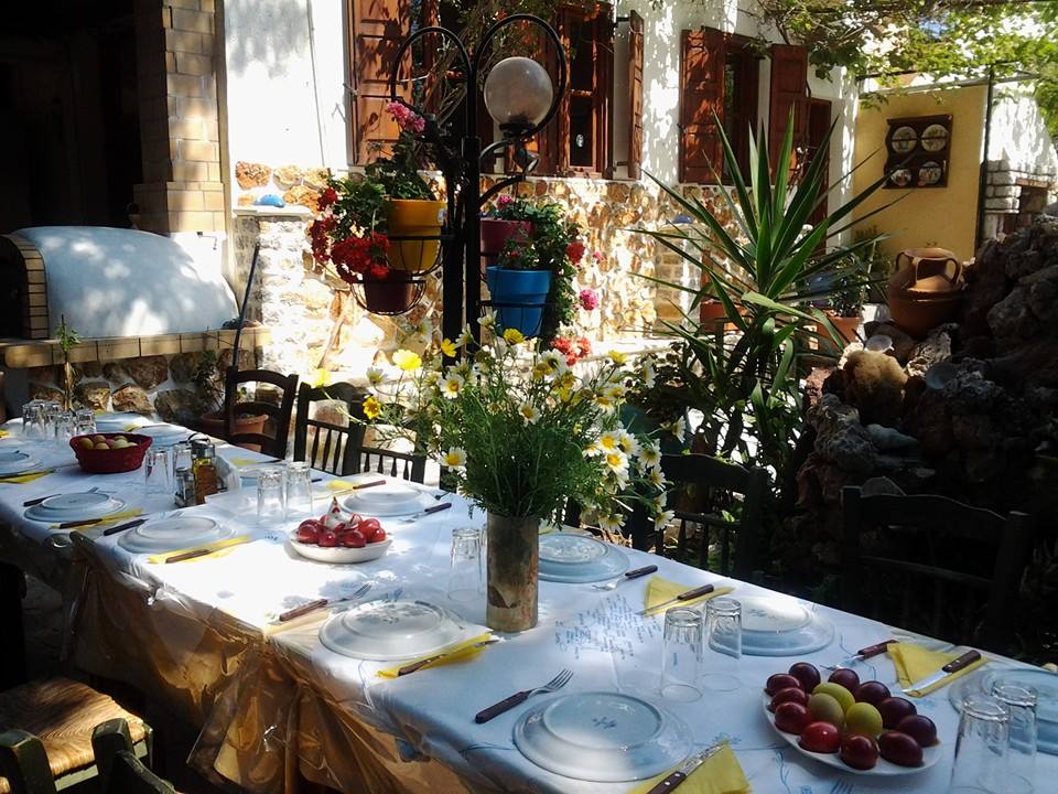 Παραδοσιακή και προσεγμένη εικόνα με κήπο και ωραία ελληνική μουσική στο παρασκήνιο.