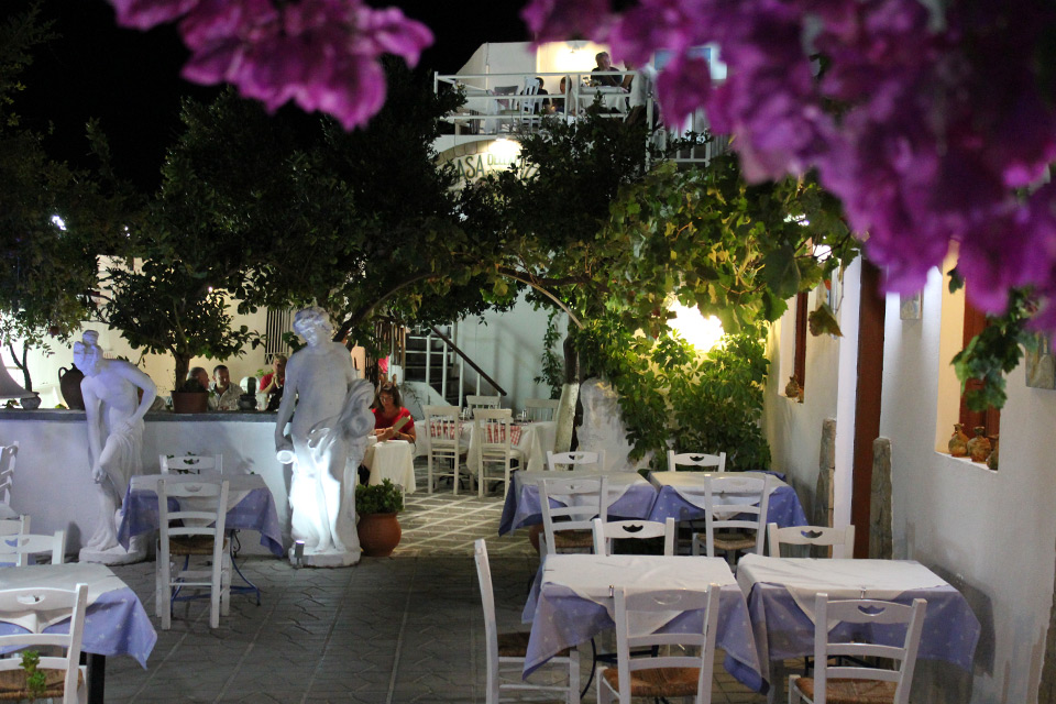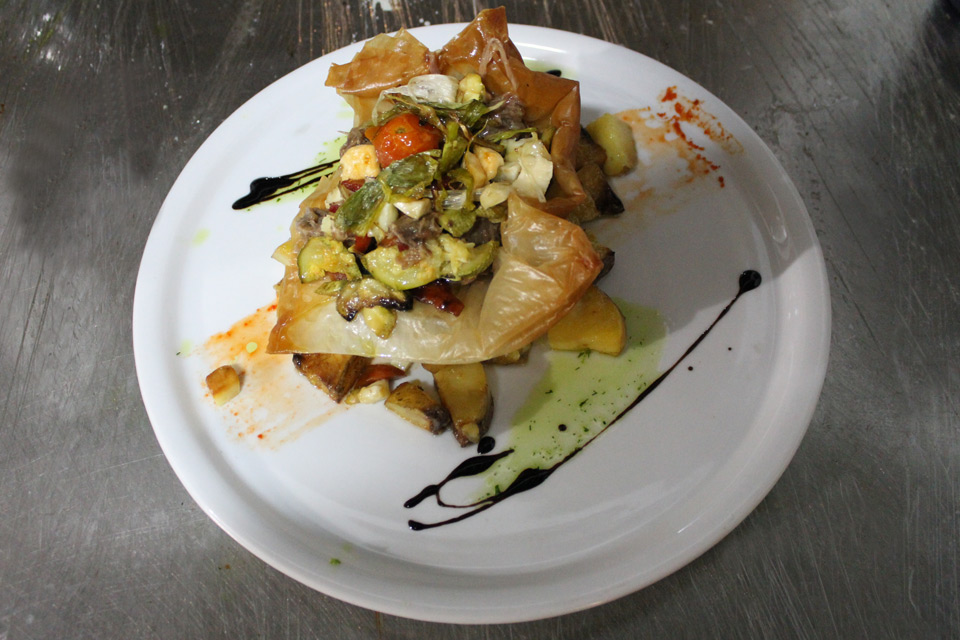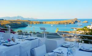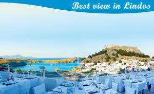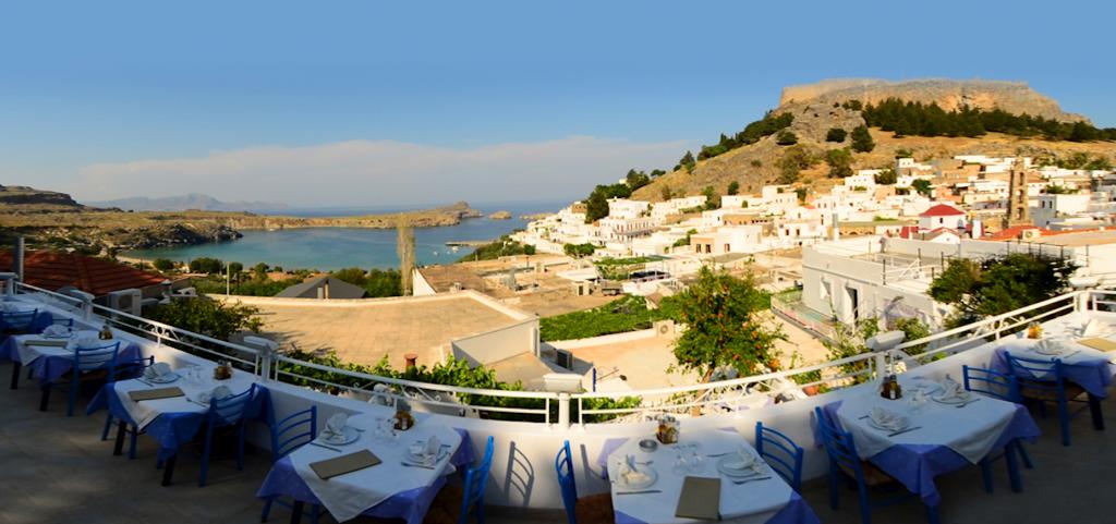 Τα μυρωδικά μας (δυόσμος, δεντρολίβανο, βάγια, ρίγανη κλπ.) καλλιεργούνται στον κήπο μας. Ο μάγειράς μας χρησιμοποιεί παρθένο ελαιόλαδο δικής μας παραγωγής. Τα λαχανικά μας προέρχονται από τοπικούς παραγωγούς, κατά το πλείστον οργανικά. Τα κρεατικά μας προέρχονται από το οικογενειακό μας κρεοπωλείο στη Λάρδο, τα περισσότερα δε, από την οικογενειακή μας φάρμα. Τα ψάρια μας είναι πάντα φρέσκα, από την θάλασσα του Αιγαίου. Το ψωμί μας παρασκευάζεται και ψήνεται στον ξυλόφουρνο, όπως και πολλά από τα προσφερόμενα κρέατά μας. Επίσης, στον ξυλόφουρνο ψήνεται και η παραδοσιακή μας ιταλική πίτσα. Φανταστική θέα, μπαλκόνι στο Αιγαίο, με την Ακρόπολη και την παραλία της Λίνδου να συνθέτουν ένα υπέροχο, ρομαντικό σκηνικό.