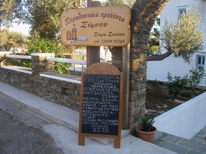 Εδώ θα βρείτε αυθεντικά τοπικά παραδοσιακά προϊόντα της Σίφνου από συμβατικές και βιολογικές καλλιέργειες και χειροποίητα γλυκά με Σιφνέικες συνταγές.