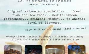 Ένα μεζεδοπωλείο με ταυτότητα, τόσο στην ιδιαιτερότητα των γεύσεων, όσο στην αυθεντικότητα των μεσογειακών και Καλύμνικων συνταγών που προσφέρονται.