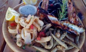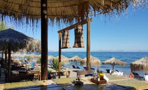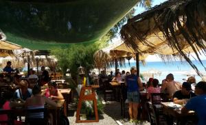 Ελληνικές παραδοσιακές γεύσεις, ολόφρεσκα θαλασσινά, ζωντανοί αστακοί και οστρακοειδή, ντόπια κρεατικά, δροσερές σαλάτες με λαχανικά που καλλιεργούμε οι ίδιοι με φυσικές μεθόδους και βέβαια εκλεκτό κρασί και ελαιόλαδο δικής μας παραγωγής. Δροσιστικά κοκτέιλ και φρέσκους χυμούς, μόλις 10 μέτρα από τη θάλασσα, σε ένα παραδεισένιο τοπίο όπου θα δείτε ένα από τα πιο όμορφα ηλιοβασιλέματα της Μεσογείου! Εδώ βρίσκεται η πιο γνωστή ταβέρνα του νησιού! Χωρίς κανένα συμβιβασμό στην ποιότητα, είναι ο αγαπημένος γευστικός προορισμός για επισκέπτες και ντόπιους καλοφαγάδες, περισσότερο από 50 χρόνια! Η θάλασσα απλώνεται κυριολεκτικά στα πόδια σας, καθαρή, ρηχή με αμμώδη παραλία ιδανική για παιδιά! Με πολλές δωρεάν παροχές, όπως: wi-fi μέχρι την παραλία, ψάθινες ομπρέλες με ξαπλώστρες, ντους, παιδική χαρά, parking κ.α.