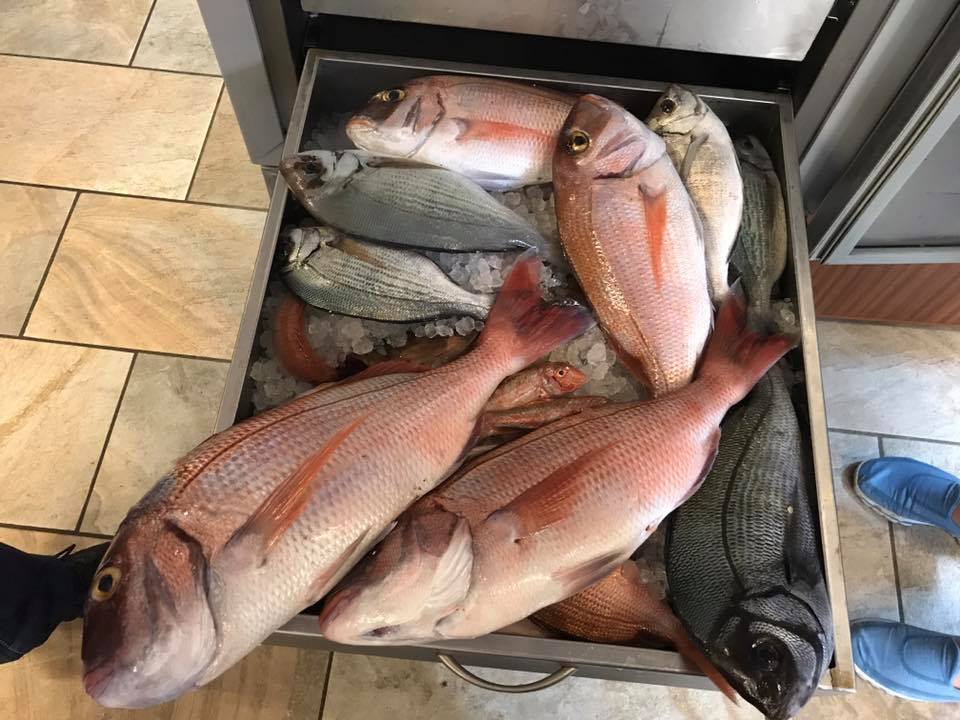 Με μεγάλη ποικιλία από θαλασσινά όπως, φρέσκα ντόπια ψάρια, φαγκριά, σκαθάρια, μπαρμπούνια και άλλα. Εκλεκτή ψαρόσουπα με διάφορα πετρόψαρα όπως, ροφούς, στείρες, σκορπινες, ντόπιους αστακούς (αστακομακαροναδες) και όπως πάντα μαγειρευτά φαγητά με συνταγές του παππού Σταμάτη και της γιαγιάς Αναστασίας.
