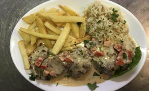 Αυτή η οικογενειακή ταβέρνα, στο γιαλό, σερβίρει μια τεράστια ποικιλία παραδοσιακών ελληνικών κρεατικών, θαλασσινών και χορτοφαγικών πιάτων.