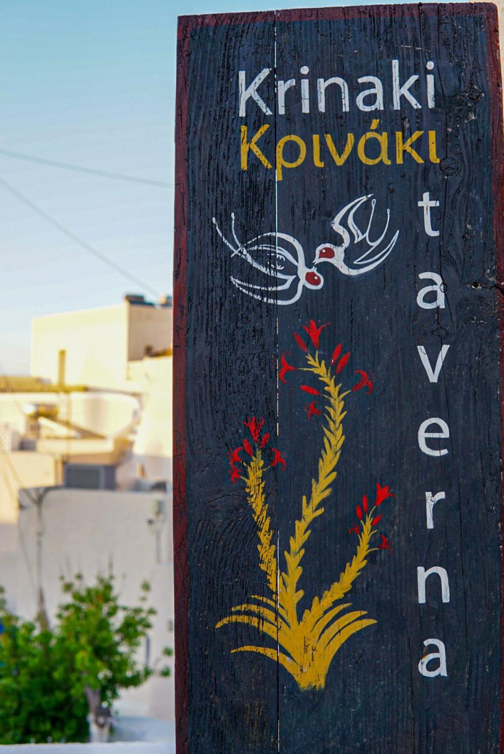 Το "Κρινάκι" από ένα μικρό οινοποιείο του 19ο αιώνα μετατράπηκε σε μια απλή παραδοσιακή ταβέρνα το 2007 στο μικρό χωριό της Σαντορίνης τη Φοινικιά χωριό των γεωργών της Οία.