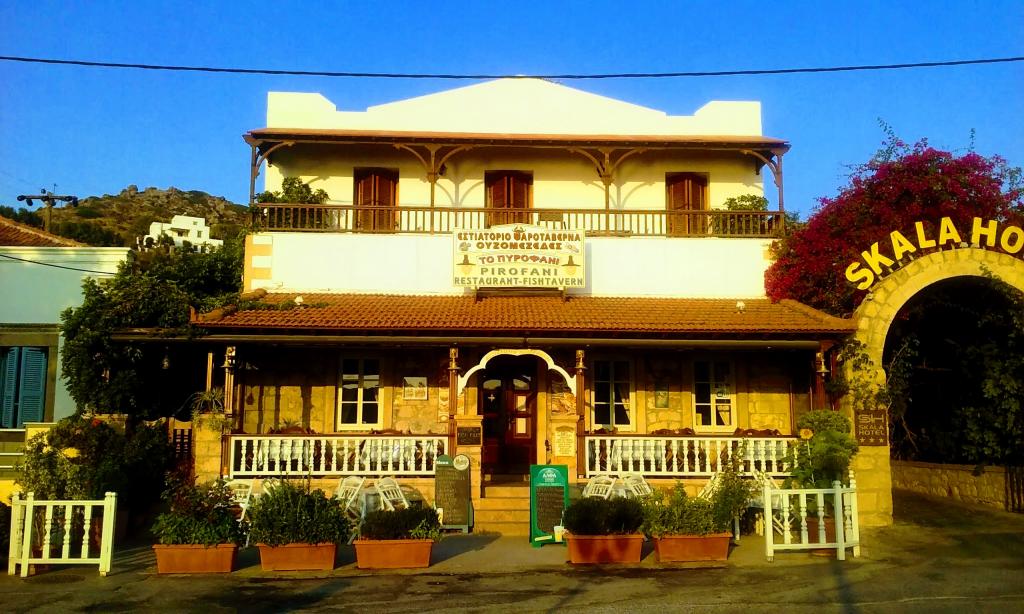 Το εστιατόριο Πυροφάνι το οποίο λειτουργεί από το 1983 βρίσκεται στο κεντρικότερο σημείο του νησιού, στο λιμάνι της Σκάλας. Τα κηπευτικά προϊόντα τα οποία χρησιμοποιούμε είναι παραγωγής μας καθώς και τα θαλασσινά προέρχονται από ντόπιους ψαράδες συλλέγοντας τα την ίδια ημέρα. Το μενού του εστιατορίου περιλαμβάνει θαλασσινά, κρέατα, μαγειρευτά φαγητά και παραδοσιακούς μεζέδες βασιζόμενα στην Πατμιάκη κουζίνα. Τα κρασιά τα οποία διαθέτουμε έχουν καταγωγή από τα γύρω νησιά του Αιγαίου.