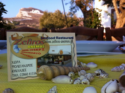 Σε μια ήσυχη γωνιά, με φόντο την Παναγία της Χώρας, βρίσκεται το παραδοσιακό ταβερνάκι Ζέφυρος Άνεμος. Σε ένα ζεστό οικογενειακό περιβάλλον, ανακαλύψτε την αυθεντική κυκλαδίτικη κουζίνα, αλλά και τα μυστικά της πολίτικης. Αναζητήστε τον ίσκιο είτε κάτω από την πέργκολα είτε στα δέντρα της αυλής και διαβάστε το πλούσιο μενού του, κρεατικών και θαλασσινών πιάτων. Ρωτήστε για τα φρέσκα ψάρια ημέρας, ντόπιας αλιείας, που θα «ξετρελάνουν» τους ουρανίσκους σας, ενώ θα έχετε τη μοναδική ευκαιρία να δοκιμάσετε τον σπάνιο αστακό «κωλοχτύπα». Συνοδεύστε το γεύμα σας- δείπνο σας με ένα αιγαιοπελαγίτικο κρασί της επιλογής σας από την λίστα του και αφήστε το νου σας να ταξιδέψει στα νησιά του Αιγαίου. Η γραφική αυλή του προσφέρεται για κάθε είδους εκδήλωση.